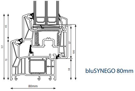 - 80mm 7-kameru profilu sistēma ar 3 blīvgumijām;